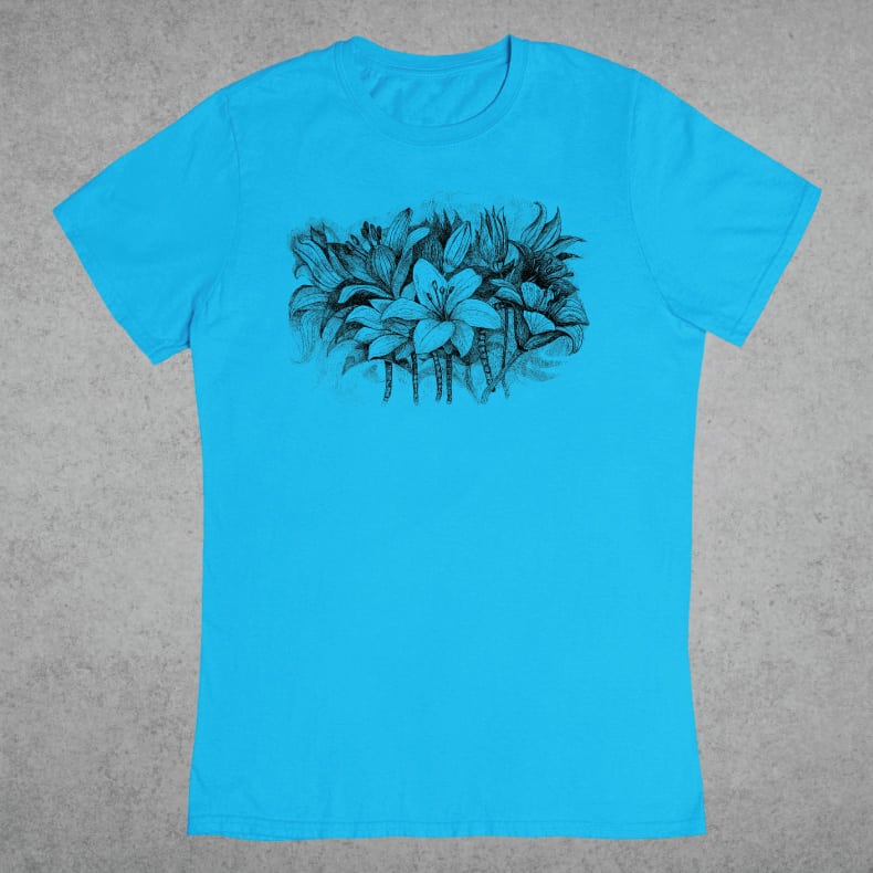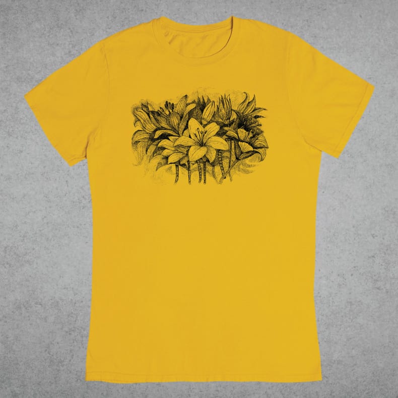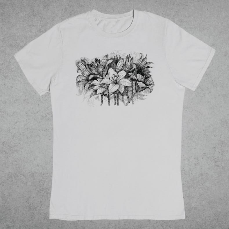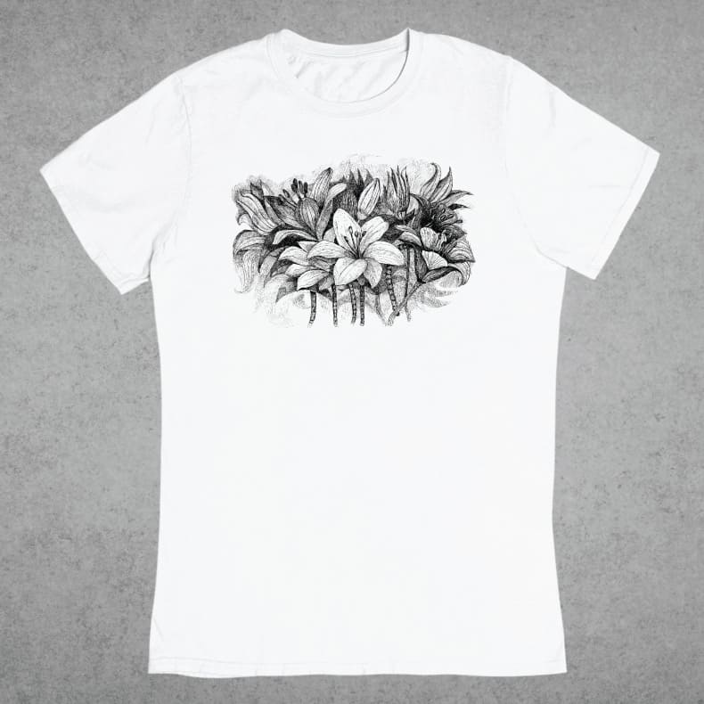 Liliomokat ábrázoló egyedi tollrajz a magyar népmesék világából.
